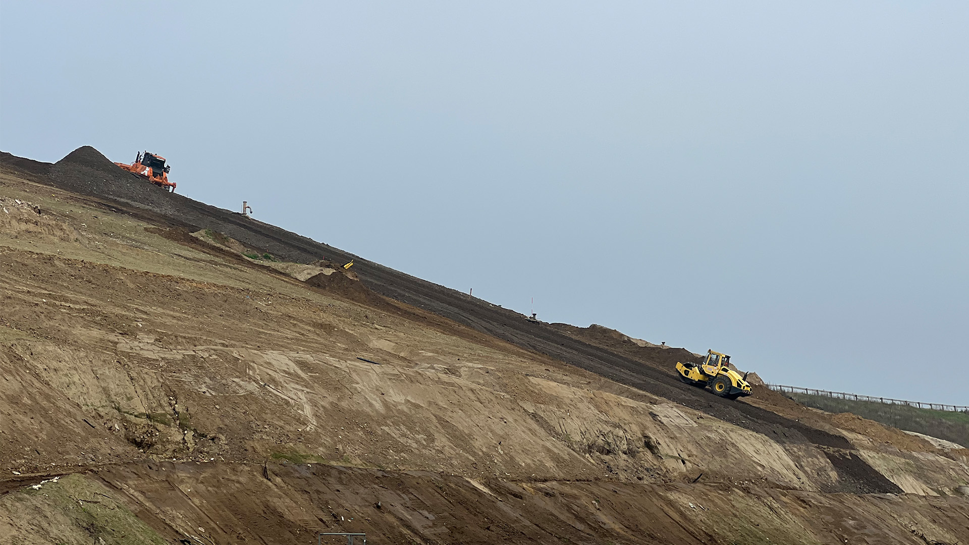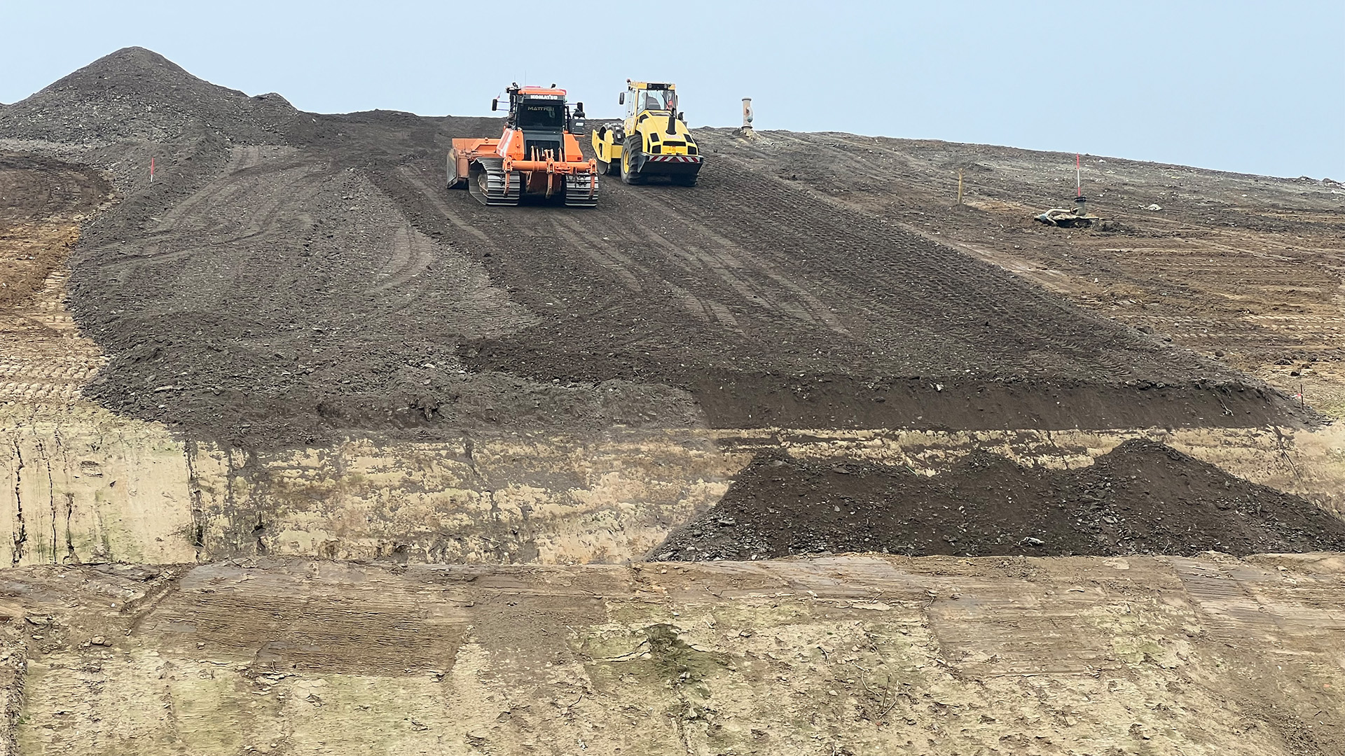 Die Profilierungsarbeiten am dritten Bauabschnitt werden ausgeführt. Damit einhergehend werden Abfälle aus dem ersten Bauabschnitt (Schüttabschnitte fünf bis sieben) in den dritten Bauabschnitt umgelagert.
